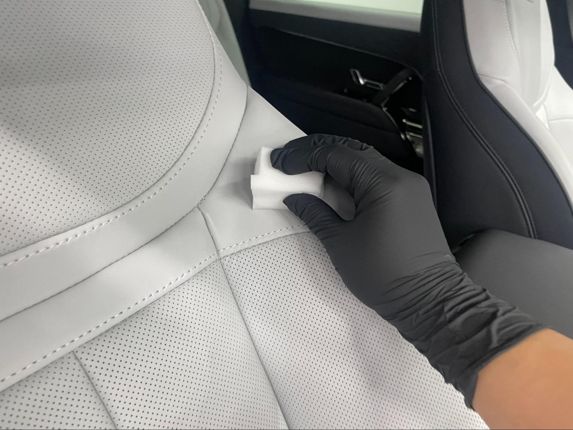 今回の車両は、レザー色がホワイトのため、コーティング施工するには最適の一台となります。