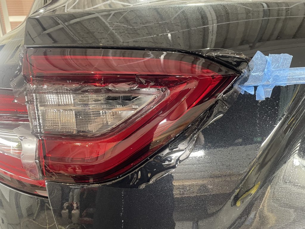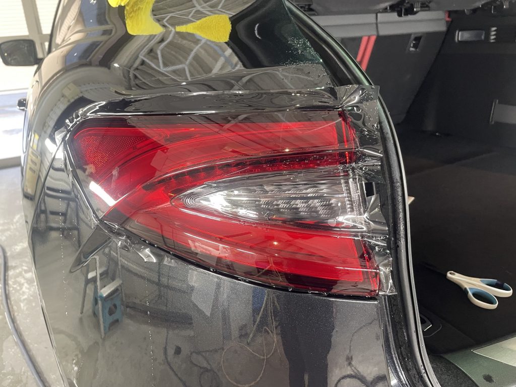 ブレーキランプとウィンカーの境目でフィルムを区切り、目立たないよう丁寧に施工しました。