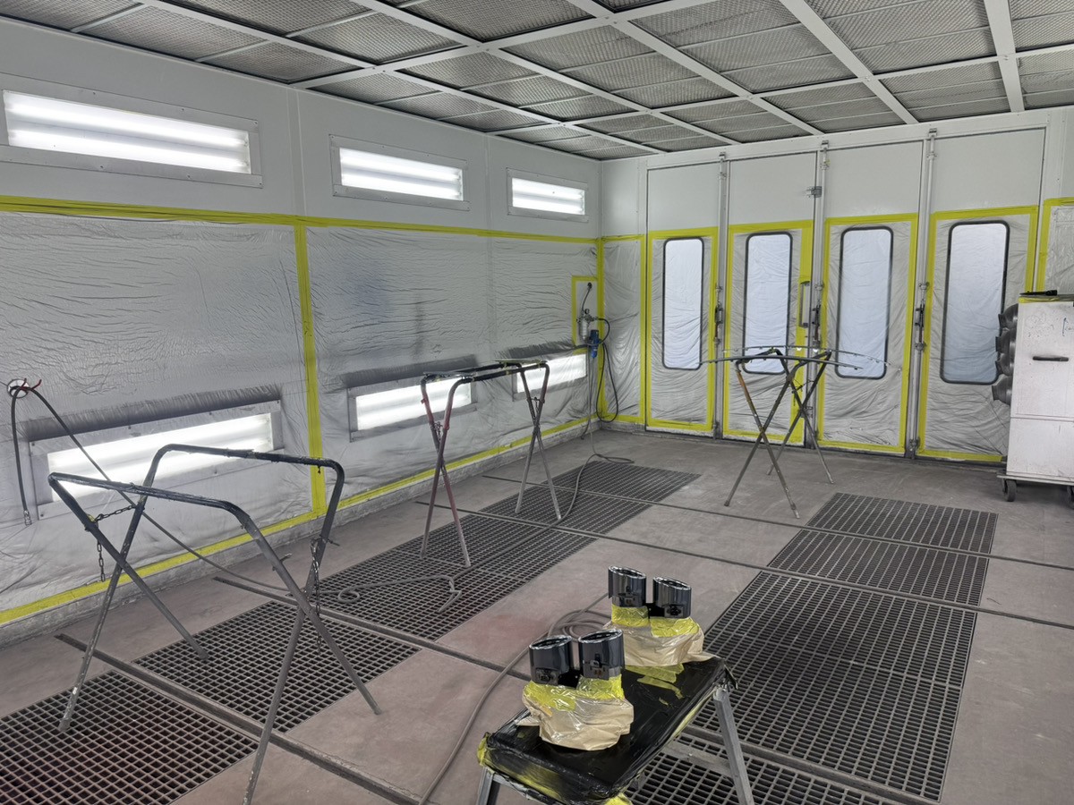 当社では作業対象の部品を、ひとつひとつ取り外して、塗装ブースで塗装していきます。