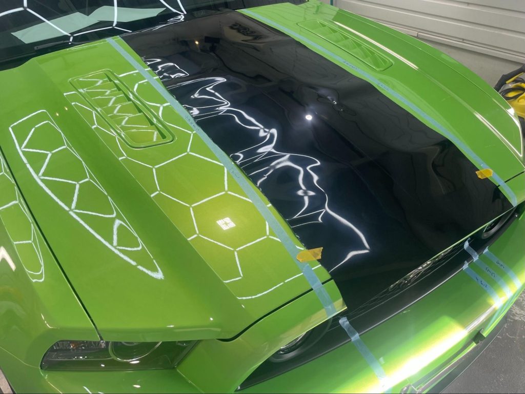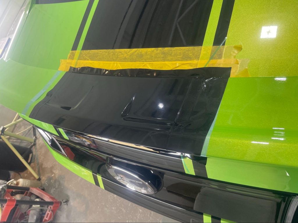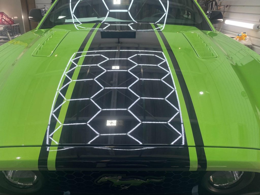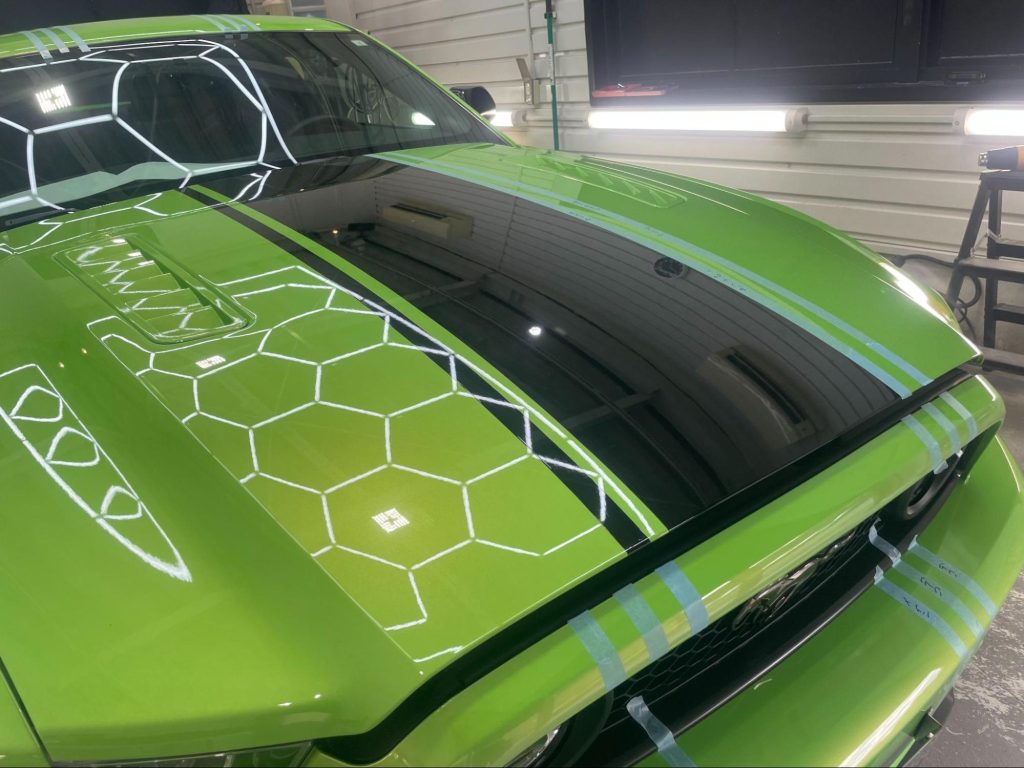今回は、フォード・マスタングのレーシングストライプ貼替え作業をご紹介します。