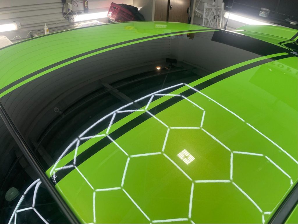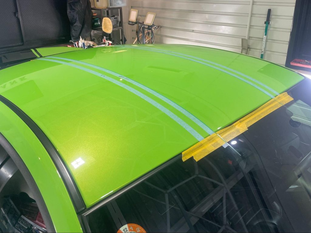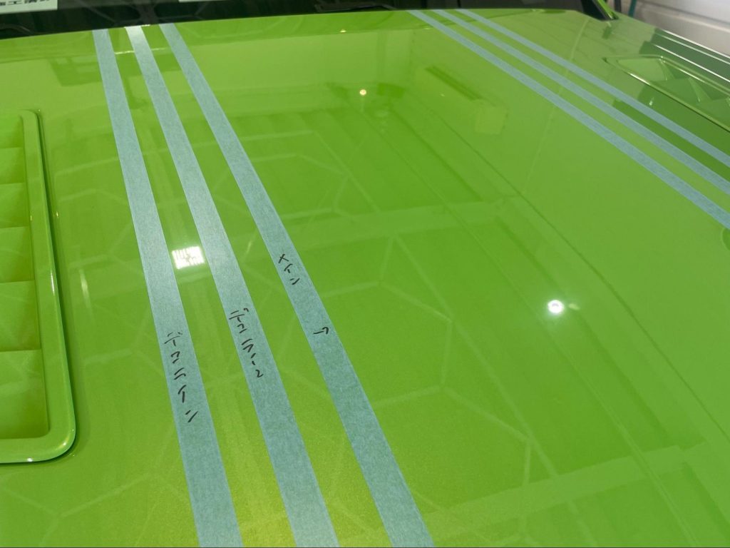 今回は、センター1本のレーシングストライプでしたが、お客様のご要望に合わせたデザインでの施工も可能です。