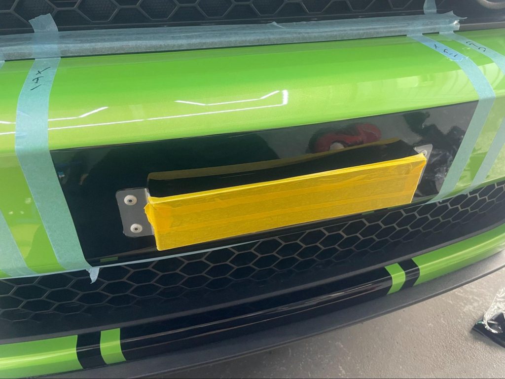 今回は貼替えに加えて、前後バンパーまでストライプを伸ばす施工をしてほしいとのご用命をいただきました。
