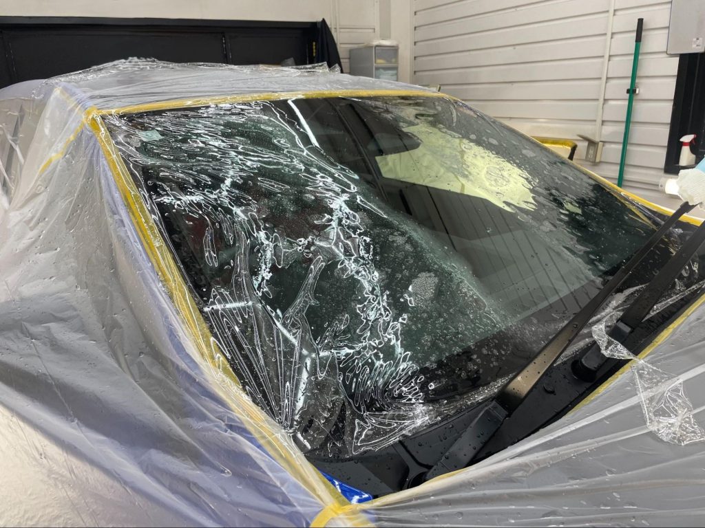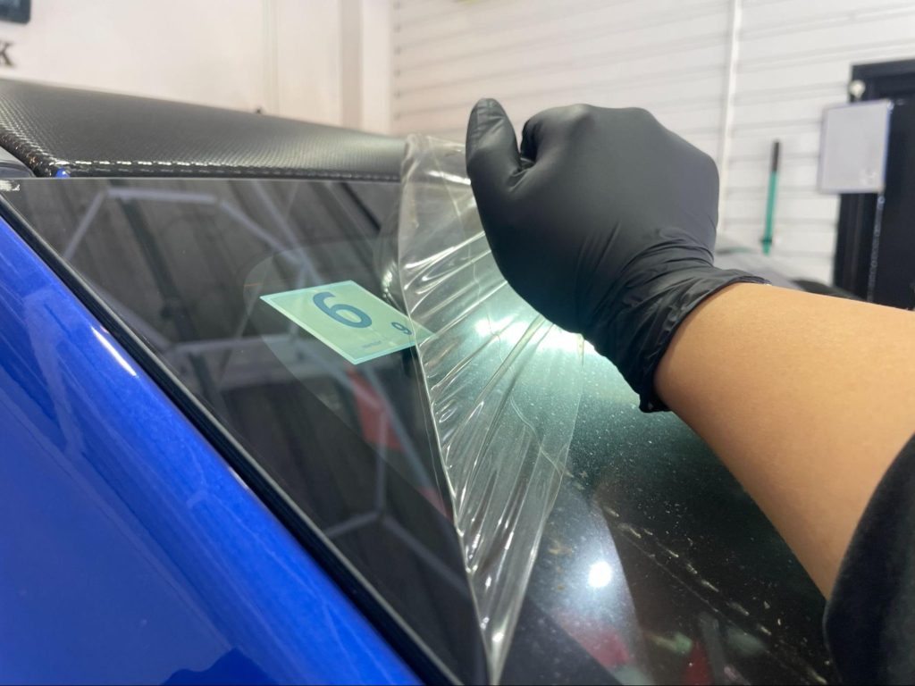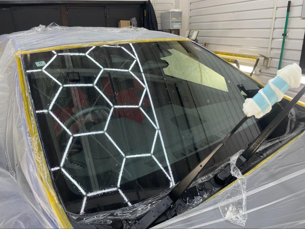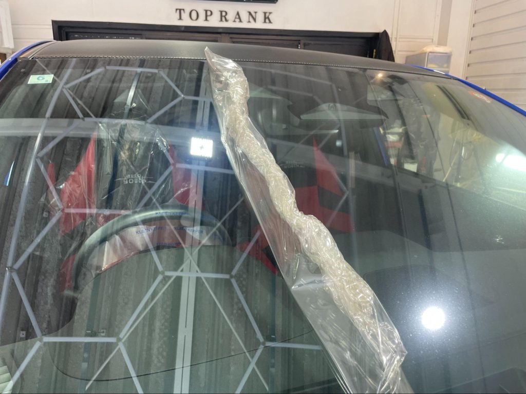 今回ご紹介する施工内容は、フロントガラスプロテクションフィルム【XPEL Windshield Protection Film】によるフィルム貼替え作業になります。